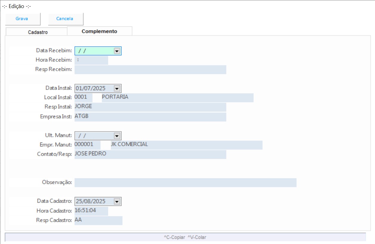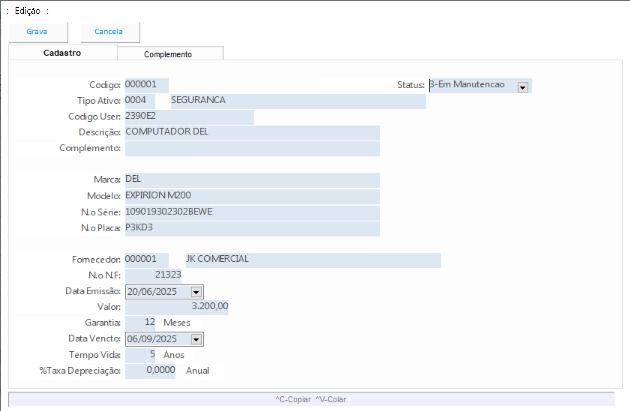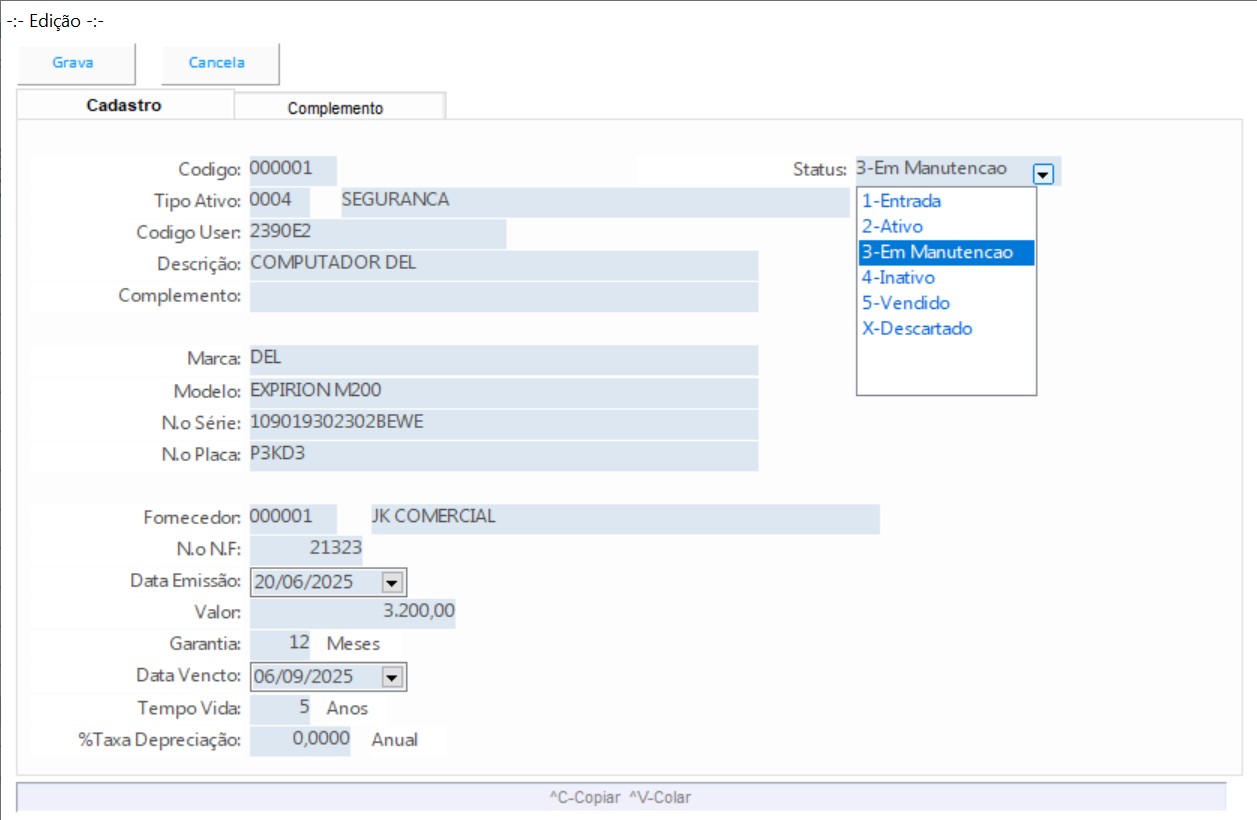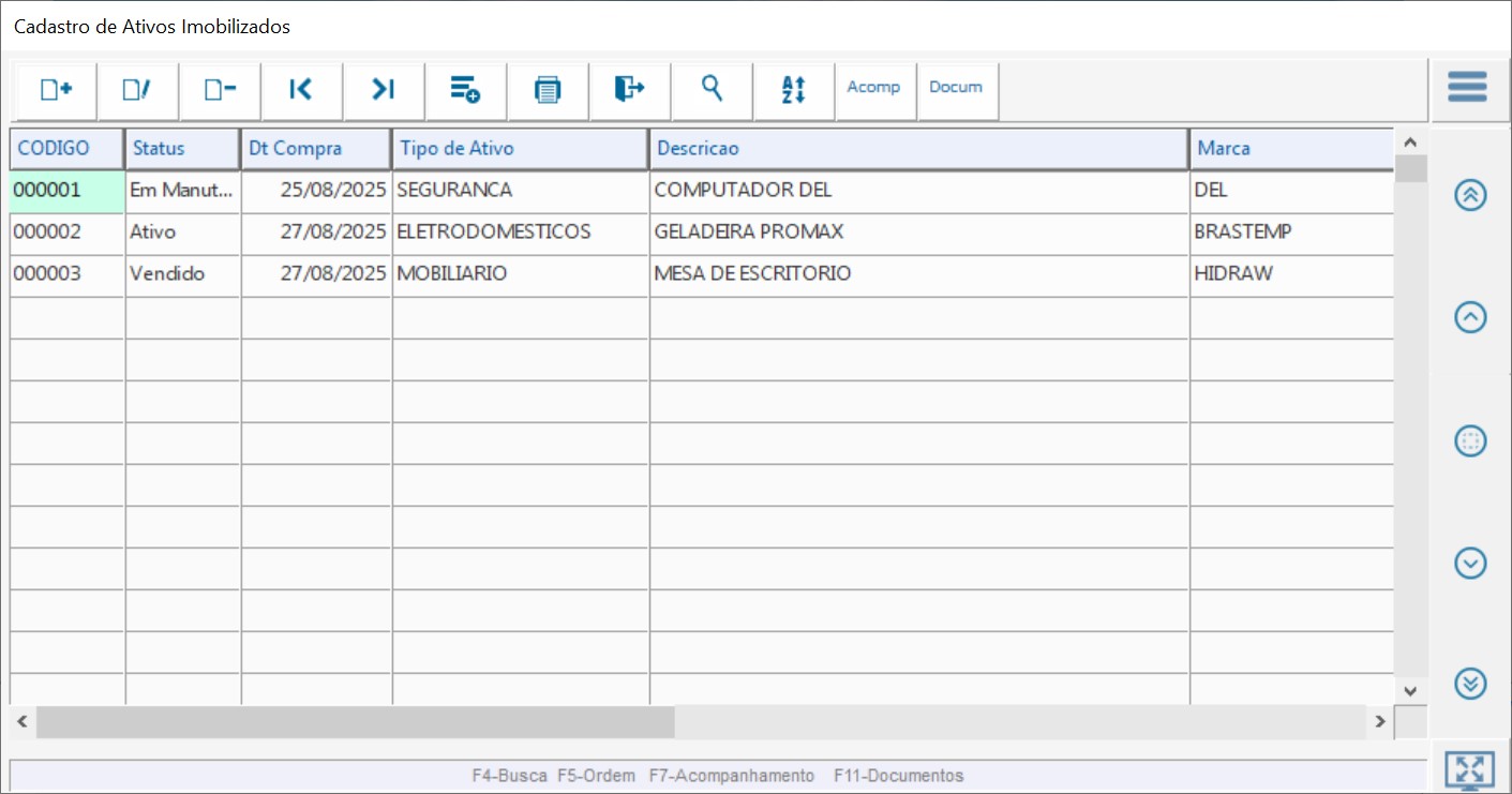 Cadastro de ativos