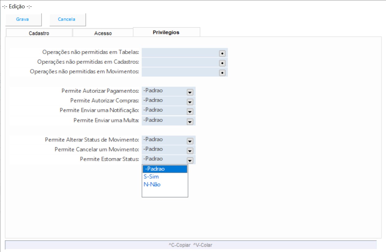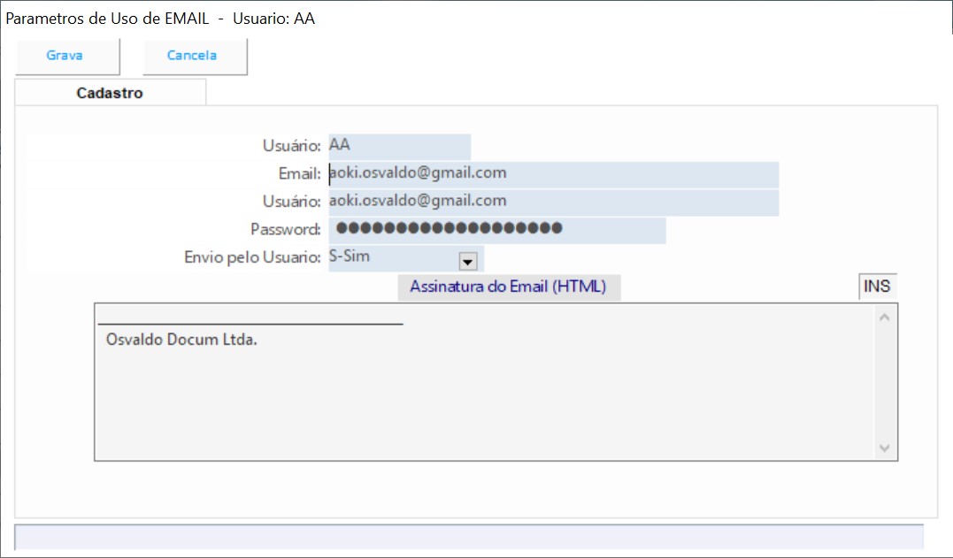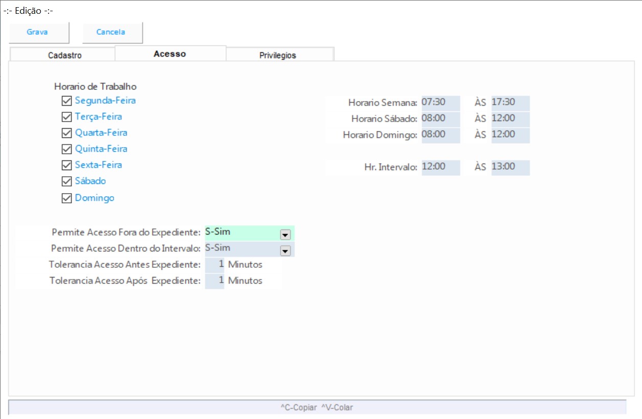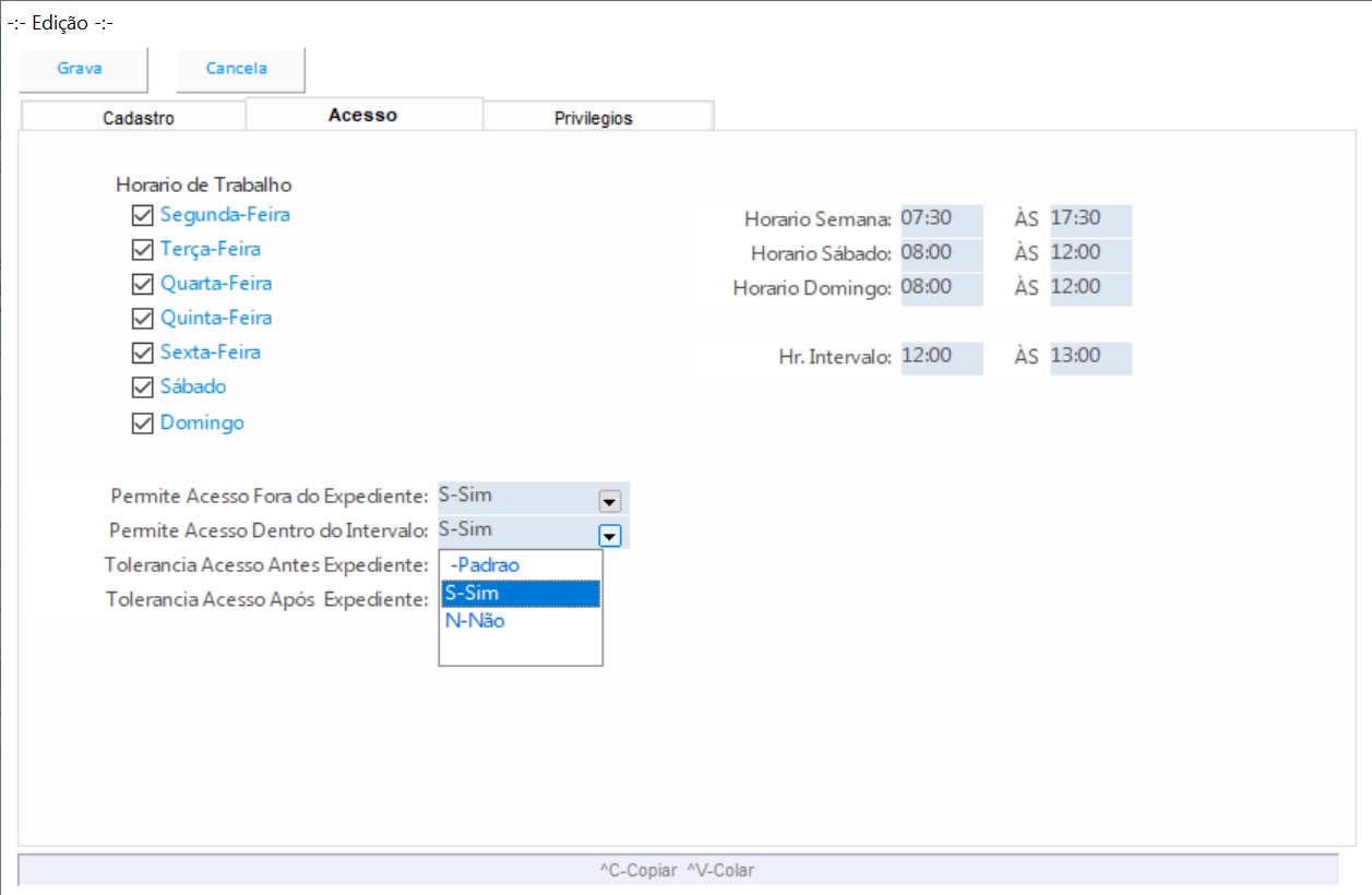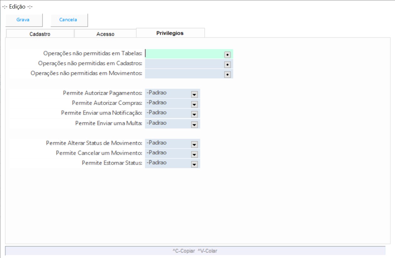 Cadastro de usuários do sistema