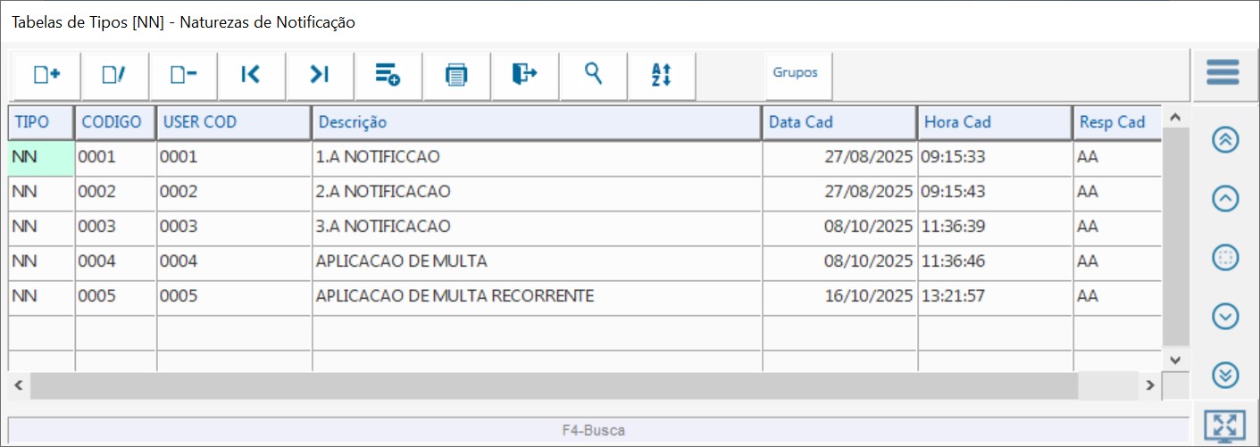 Naturezas de notificação