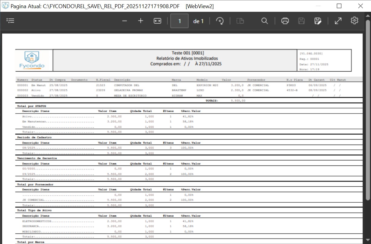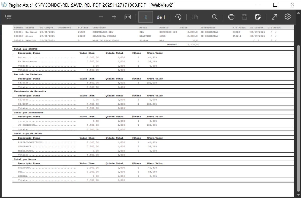 • Relatório de ativos