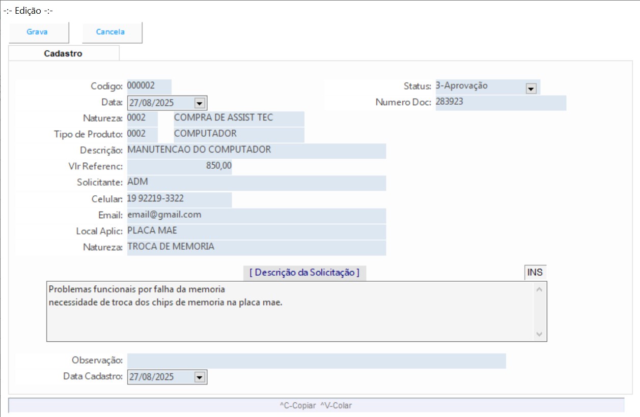 Solicitação de compras